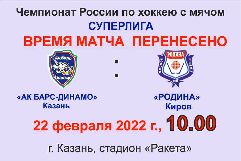 ХК "Ак Барс-Динамо" информирует: завтрашняя игра Суперлиги начнется в 10.00